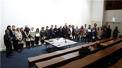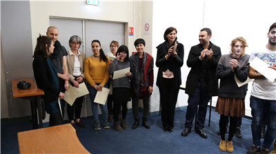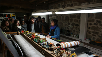 2016年11月13日至11月19日,中国美术学院雕塑与公共艺术学院教师施慧和阿萨杜尔·马克洛夫带领纤维艺术系两位学生,赴法国参加由法国奥布松壁挂美术馆主办的名为《壁挂,墙和建筑师》为期一周的工作坊。壁挂给予艺术家和建筑师一个创作的范畴——壁挂也成为建筑性思维的刺激要素。工作坊参与者包括来自波尔多市的国立建筑与景观艺术学院(ENSAP)的十三名学生,来自利摩日市国立艺术学院(ENSA)的十名学生,来自中国美术学院的两名学生,来自雷克勒兹省Raymond Loewy of La Souterraine高等学校的十名学生,以及来自奥布松壁挂美术馆培训中心的8名编织学员。工作坊将参与者分为八组,每组都由各个不同学校的学生以及一位编织学员组成。建筑师,视觉艺术家,造型师和编织者可以在一起,为新形式的壁挂进行创作。在创作过程中学生们参观了博物馆和奥布松壁挂的生产链,对壁挂历史进行了很好地了解。最后一天每组将小组设计成果用ppt演讲,并结合模型绘画以及虚拟图像等形式呈现给评审团,评审出三组优胜者。