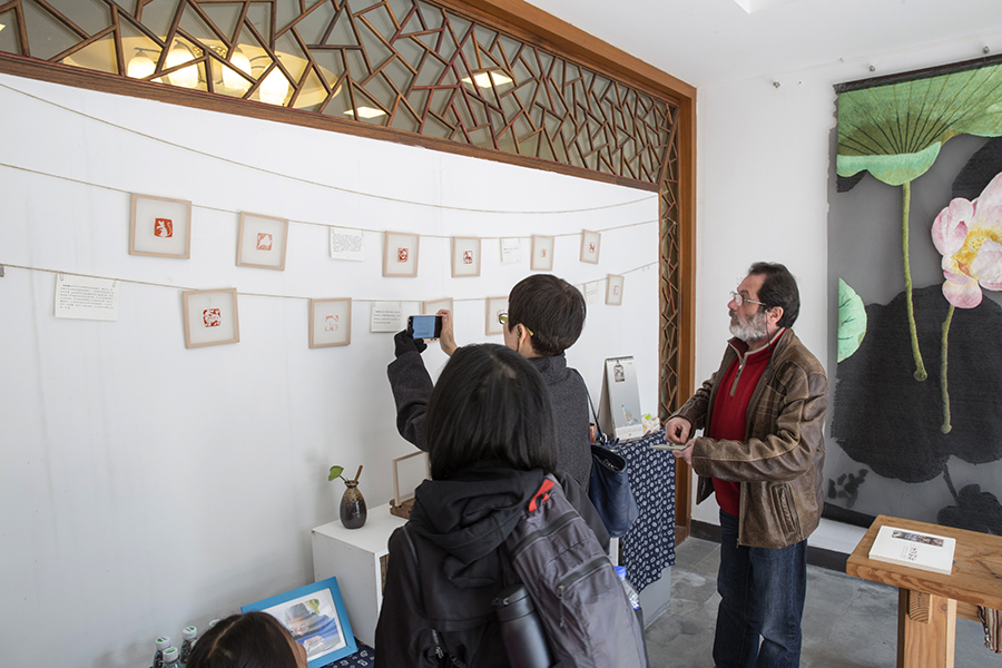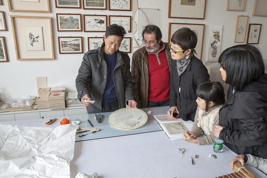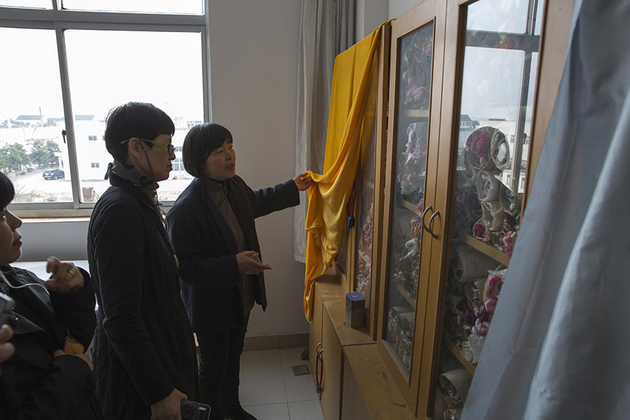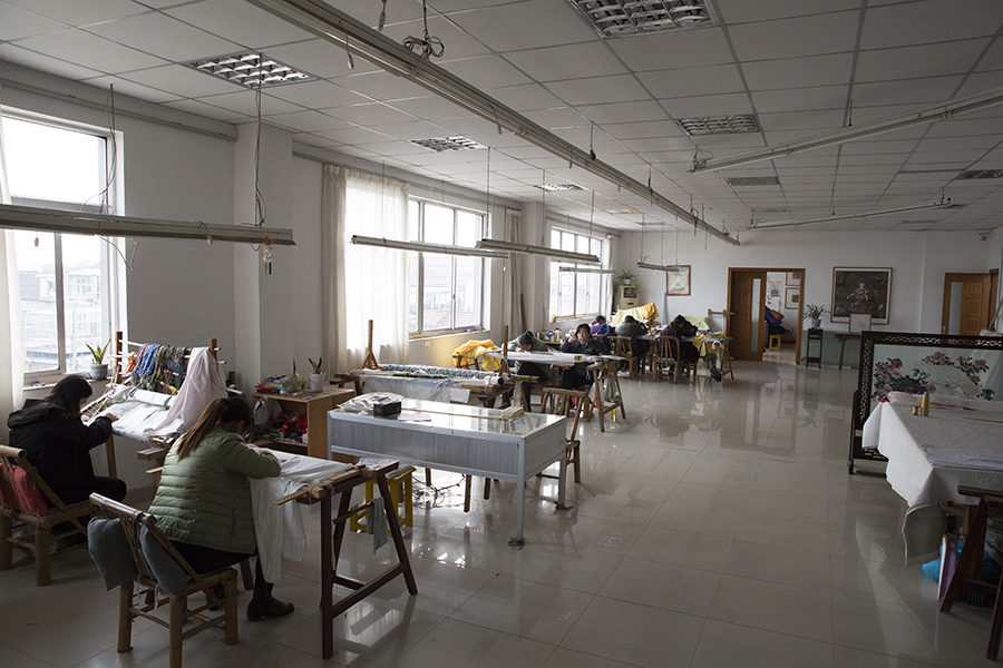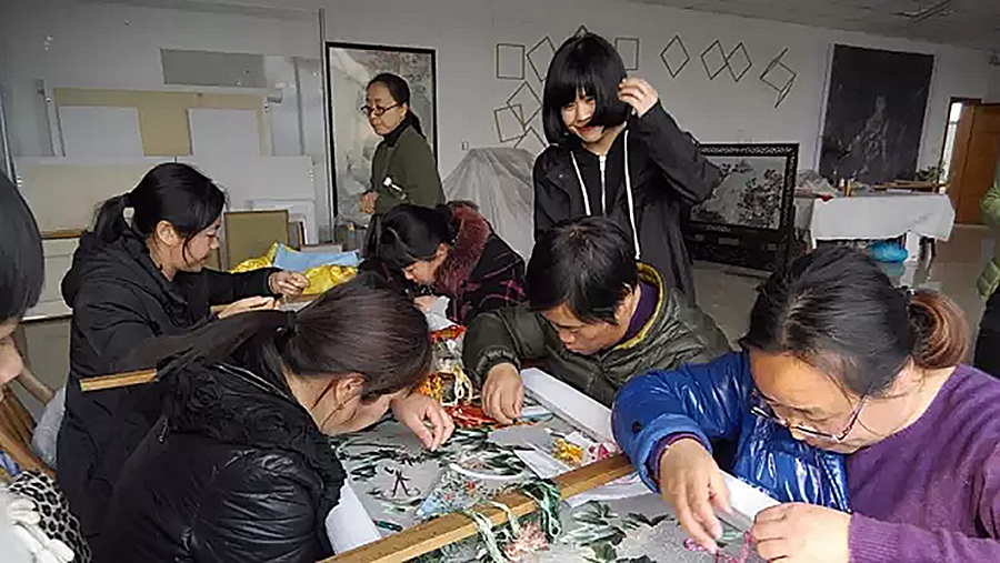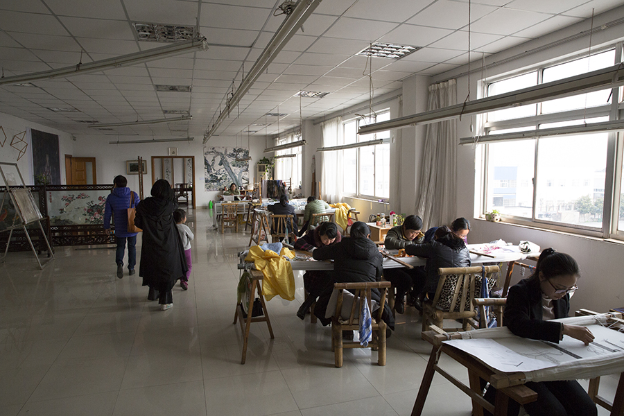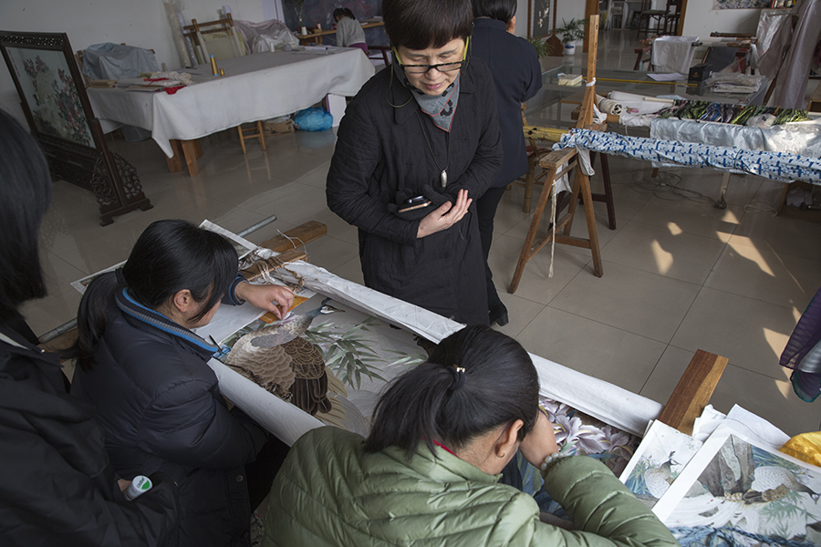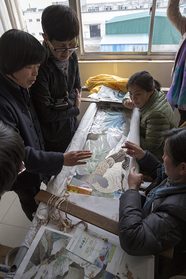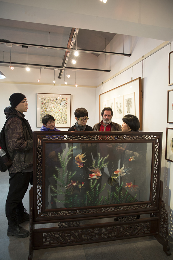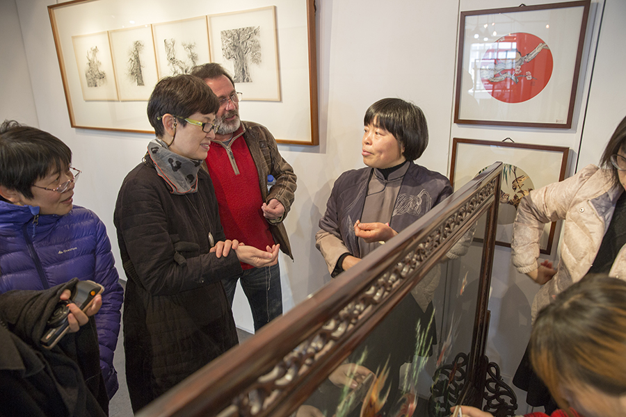 2017年3月3日,由施慧老师带领,中国美术学院纤维艺术系教师一行赴苏州镇湖考察,参加苏州刺绣工艺大师梁雪芳老师个展《苏艺天工·梁雪芳苏绣作品展》开幕式,并参观梁雪芳刺绣艺术馆与艺术家绣坊。