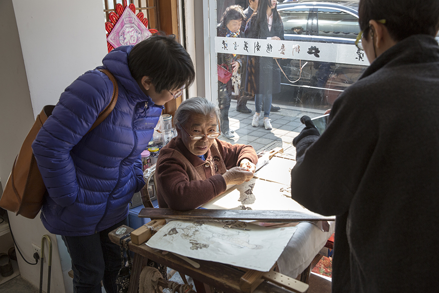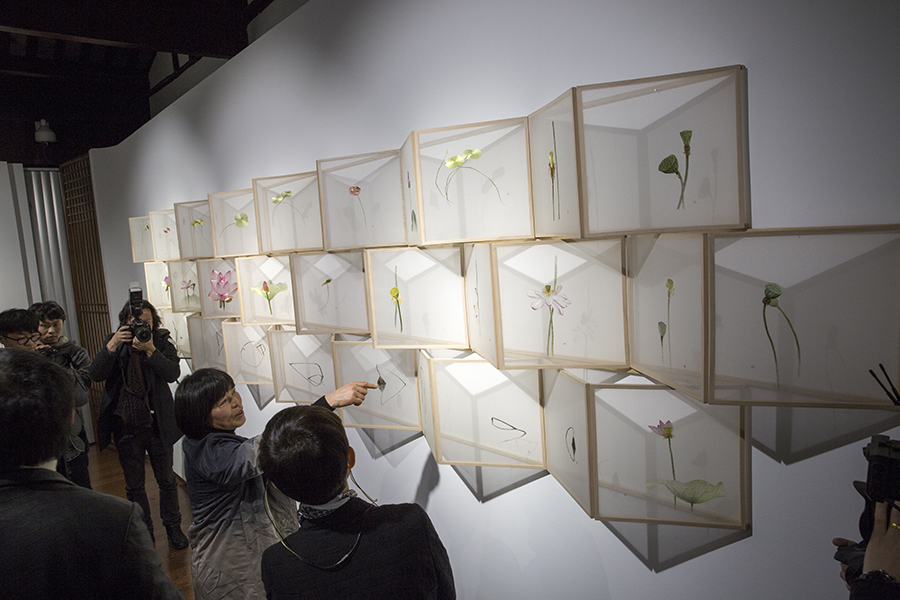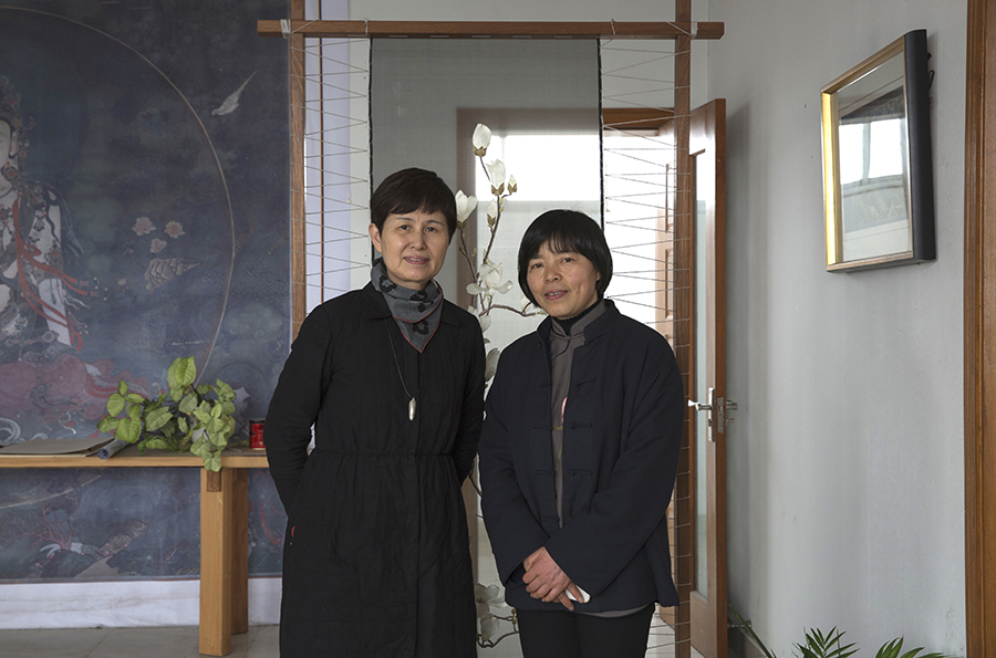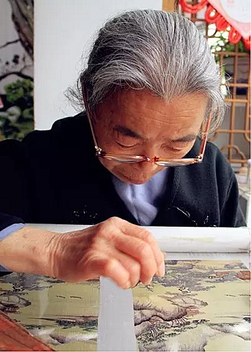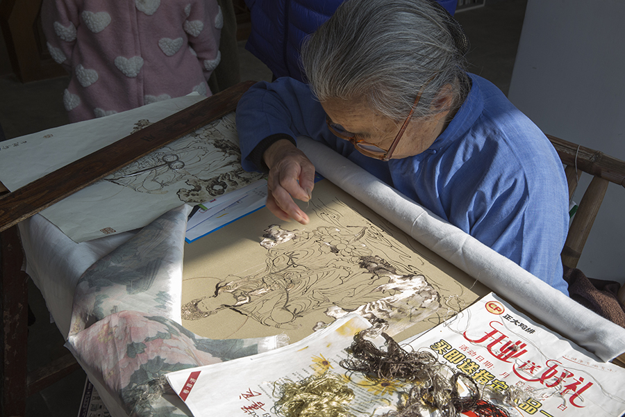 马惠荣女士,梁雪芳的母亲,刺绣艺术大师,一位与针黹为伴六十余年的老人,每日绣画,“以针言说”。她们母女两代人的绣作,是传统与当代的碰撞;从这些绣画作品中,我们能看到顾绣的传承与探索。2016年,与梁雪芳一同参加第二届杭州纤维艺术三年展。此次苏州考察,有幸在梁雪芳刺绣艺术馆得见。