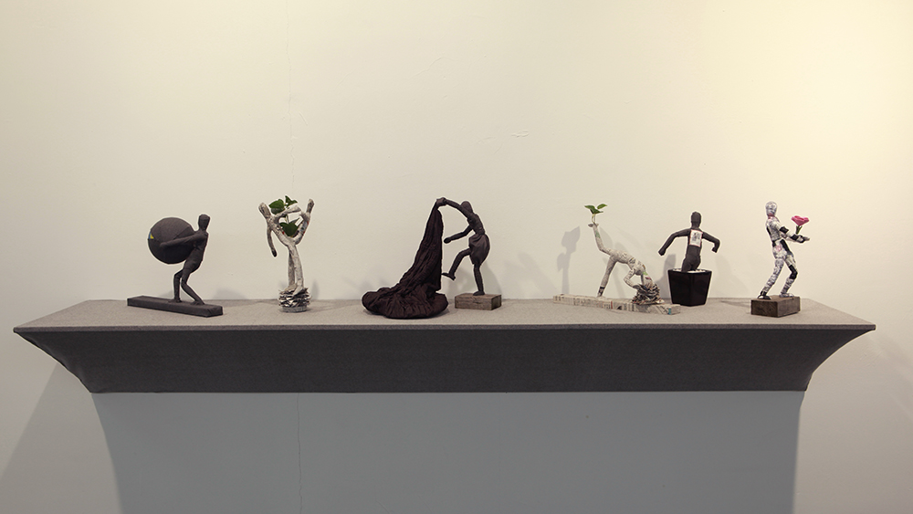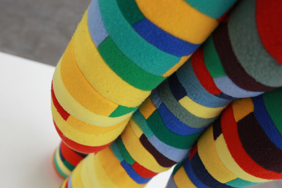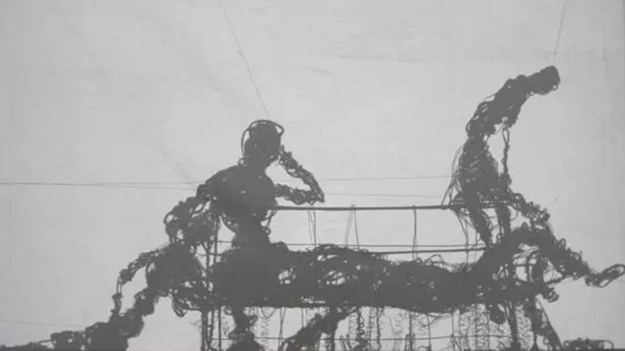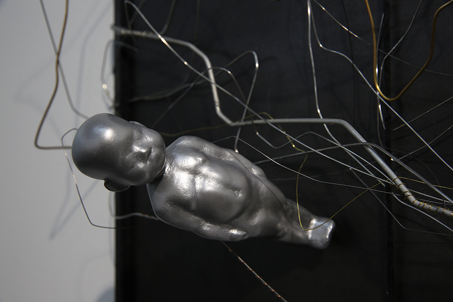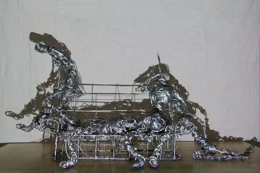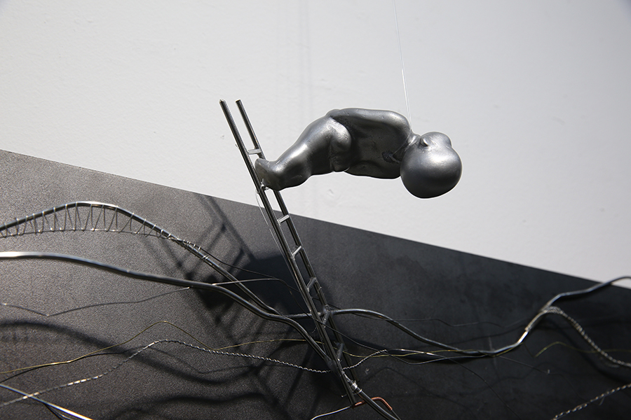 作品整体造型是一个四肢缠绕的人体,四肢被极度地夸张拉长。表现一个人在面对自身问题时纠结、挣扎、犹豫、想要寻找出路又被自我困住的状态。