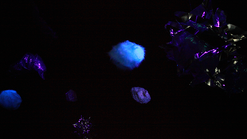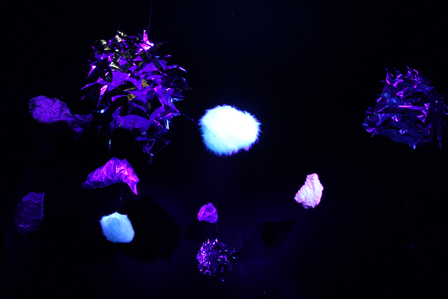 以柔软的,光泽的,可伸缩的材质,制造出未知生物形态的物体,配合异化的光线,试图表达每个生命超越物质存在的某种“灵魂”。