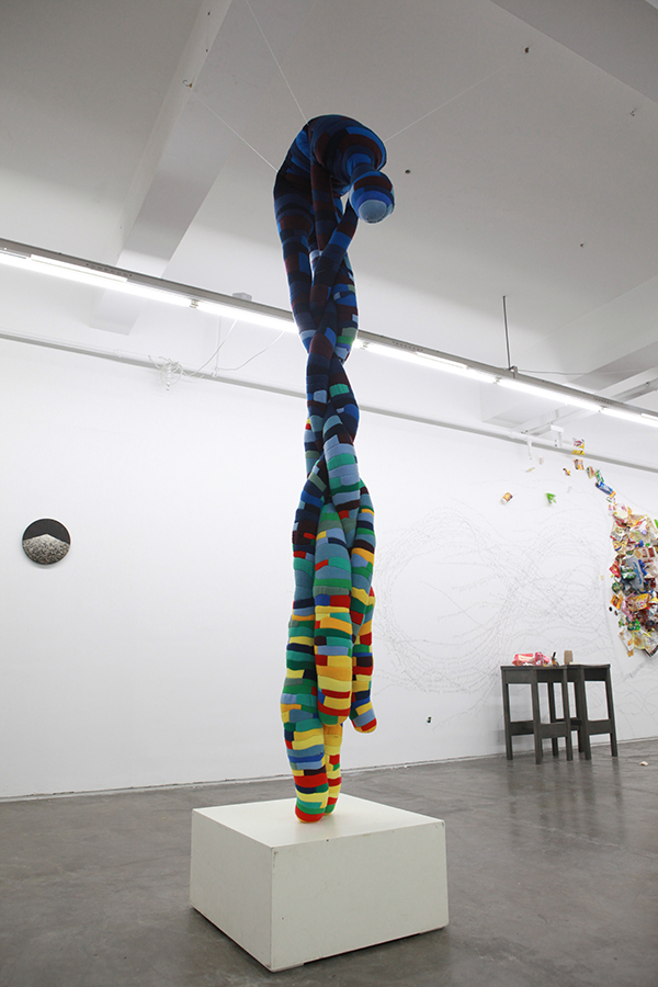 “纤维艺术新锐展”是一个主题明确、特点鲜明的展览,展出作品来自现有的或特别定制的纤维艺术系学生的作品,表现了年轻艺术家们对社会现状和个人问题的思考。我们可以看到,参展艺术家们试图通过创造一幅幅纤维艺术的图景来叩问自己、反思当下现实。艺术家们创作的一个基本宗旨是:赋予作品以观念和意义,而不仅仅涉及材料、造型、色彩和技法。
