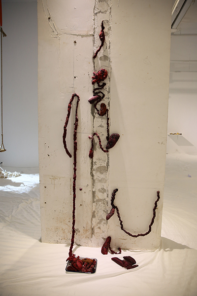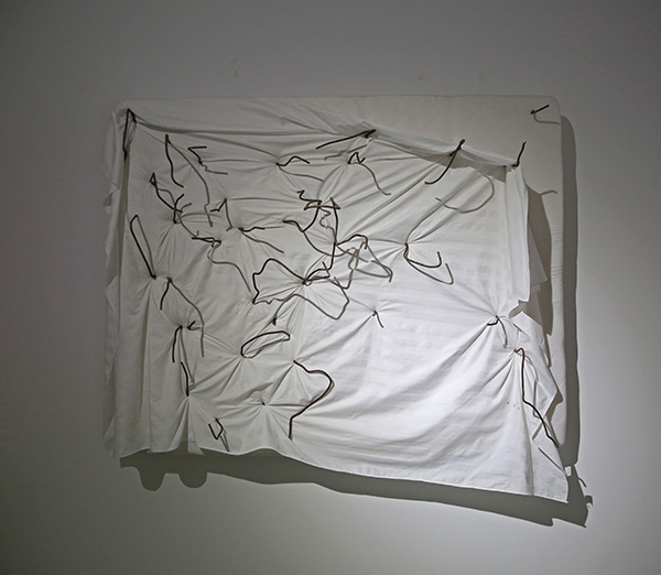 Waste steel, sponge, sheet 废弃钢筋,海绵,床单 430 x 300 cm