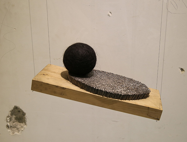 Hair, board, nail 头发,木板,钉子 45 x 16 x 20 cm