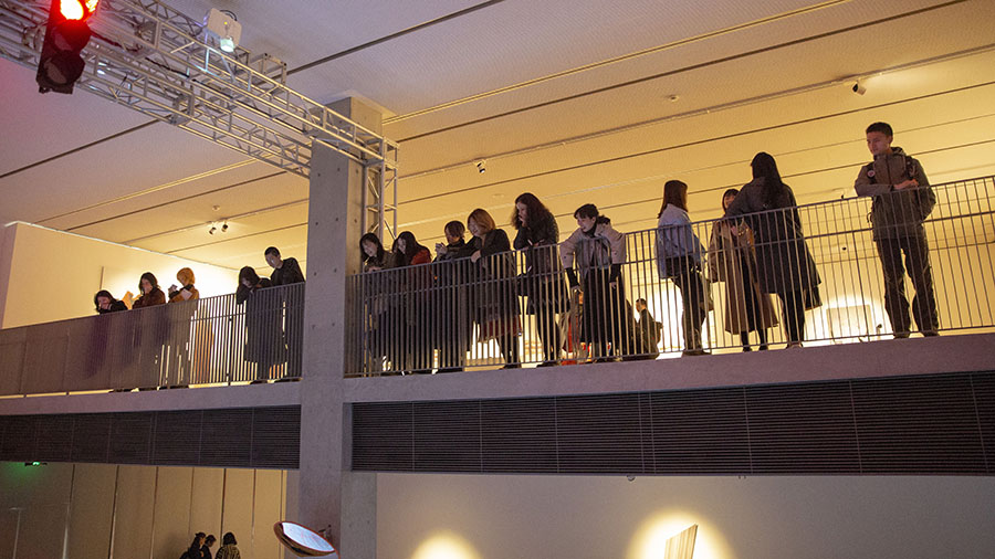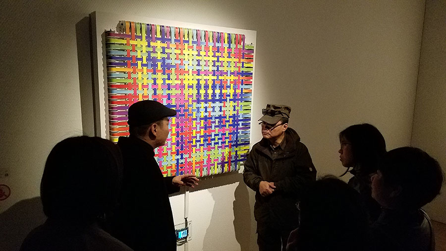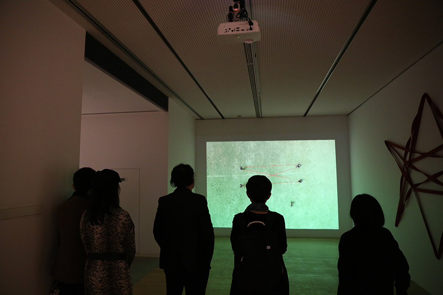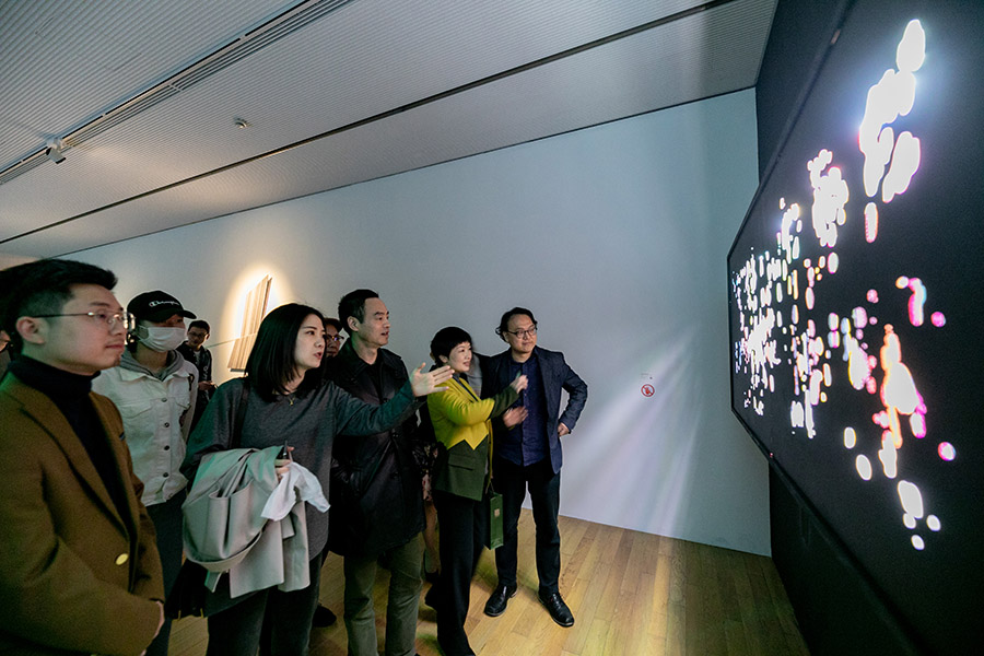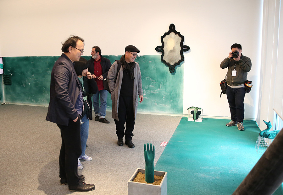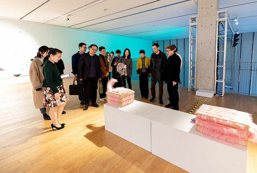 随后跟随本届展览的两位策展人,黄燕教授和宋振熙先生的导览,嘉宾们进入大屋顶美术馆内观展并进行探讨交流。