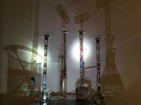 材料:纸浆、石头、毛毡、墨汁、凹面镜