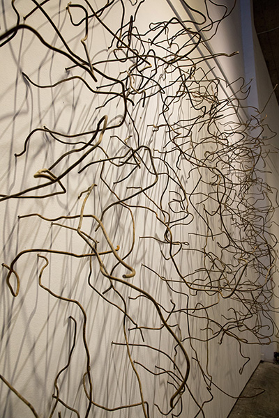 作品简介:胚胎是生命孕育之初的形态,作品以这种形态探索生命逐步发育,以及不同物种间发展进化的不同轨迹的过程,展示出每个生命个体即是相似又是独一无二的。作品以综合材料为媒介,和不确定性的捆扎排列组合,以此呈现出生命在成长过程中存在的种种可能性。