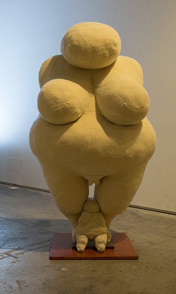 作品简介:《羊维纳斯》是以圆雕“石维纳斯”维林多夫母神为原型——胸部突出,腹部宽大,腰腿粗壮,女性特征被强调得极其夸张。“石维纳斯”象征着旺盛的生育力,是旧石器时代母权制社会观念的反映。