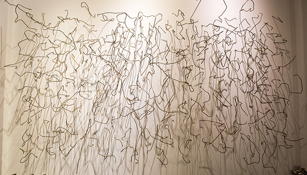 作品简介:扭曲的钢筋作为缝合城市又被拆除的线,是“私密空间”的组织结构,也是个人生活与公共空间的生硬连接,它构成了交流的壁垒。失语,作为一种病变和表达的失效,如同钢筋对于墙面的缝合与拆解,游离于交流和理解的边界。
