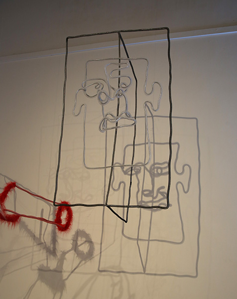 作品简介:用线性材料勾勒出一个看似立体实则扁平的表情形象,正如网络词一样空洞。创作手法较为随意,无逻辑,网络词的出现也往往较为偶然,突然迸发出力量,又在短时间内很快被人遗忘,或是被新的流行词代替,流行词和表情符号常常相伴而生,每当出现一个流行词,人们会争先恐后的运用这个词和它的表情符号,仿佛这是时代的潮流,不适用流行词就被时代抛弃。这类表情和词汇总是被堆砌滥用,并不能反映使用者的真实思想,交流变成了表情包乱飞词不达意的混乱行为。