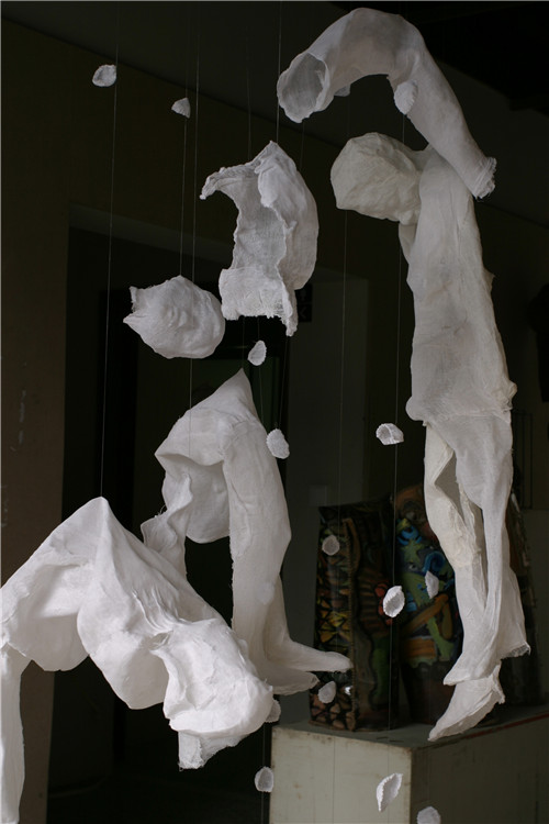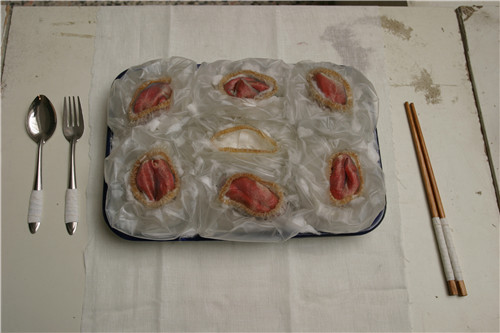付岩《比萨饼》垃圾袋、套袖、纱布