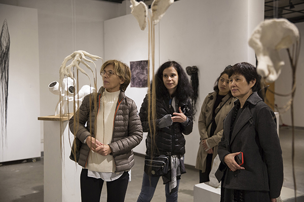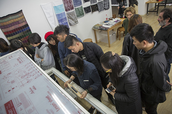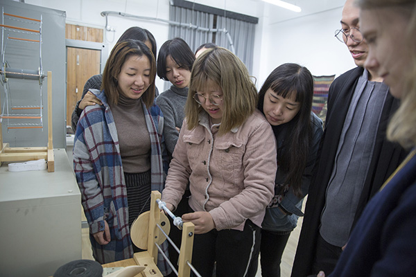 中国美术学院纤维艺术系于2017年11月6日至17日在象山校区5号楼纤维艺术系举办首期数码编织与纤维艺术工作坊,由施慧教授和阿萨杜尔·马克洛夫教授主持,挪威数码编织专家维贝克·韦斯比女士主讲,美国纤维艺术家莉亚‧库克教授指导。此次工作坊的教学重点,是数字技术与艺术创作的互动性。学员由来自国内各大高校的教师与中国美术学院纤维艺术系学生构成;通过为期28天的教学实践,培养学员从图形构思到编程转译,进而运用数码织机进行艺术创作。