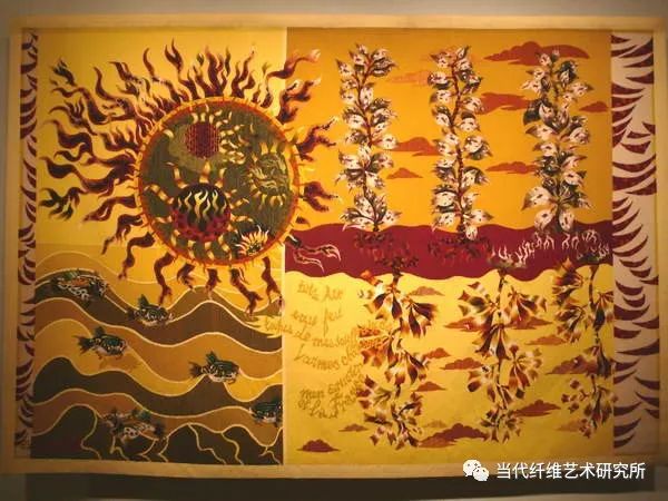 大战后的波兰政府也极力推广手工艺的发展,尤其重视编织工艺,在华沙设立了艺术学校和实践工厂,波兰的纤维艺术发展由此孕育而出。1970年波兰罗兹壁挂双年展创立,更推动了纤维艺术运动的发展。此时的纤维艺术创作成为了一种原创性的艺术创作语言,编织艺术家以各种素材与技法从事创作,作品由平面的形式发展成立体的造型,进而成为三度空间的装置艺术。玛格达莲娜-阿巴康诺维兹(Magdalena Abakanoviz)即是带有强烈表现风格的欧陆立体纤维艺术的代表。她在织机上自由地编织,编织的结构和材料所呈现出的肌理直接成为了一种艺术的语言。她的作品特质为深沉的色彩,粗狂的肌理,厚重的造型和麻类原始材料的运用。她以编织或非编织技法创作巨幅作品,来诠释生、死、绝望等哲学性主题,表达出艺术家极具冲击力的情感,被公认为当今纤维艺术的巨人。波兰是现代国际纤维艺术发展的摇篮之一。这与其历史上盛产羊毛和具有深厚的编织传统密不可分。其周边国家如芬兰、捷克、南斯拉夫、保加利亚、匈牙利、前苏联等地都在60、70年代介入现代纤维艺术研究。波兰艺术家阿巴康诺维兹、保加利亚艺术家马林·瓦尔班诺夫(万曼)(MARYN VARBANOV)、大地景观艺术家克里斯多(Christo)珍娜-克劳德(Jeanne Claude)夫妇就是其中的杰出代表。