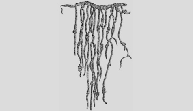 来用作某些信息的记录:有的绳结在左边,有的结在右边,有的结得比较松,有的结是单结,有的结是双结;有的绳是粗绳,有的绳是细绳。结与结之间的间距、绳索的颜色和组成也各不相同,还可能有添加的纤维状或装饰性的部件,这些绳索记录了一系列的信息,但书写文本大约在4000多年前才出现,史前人类通过绳索打结建立的系统如同人类文化史上的档案系统,在固定的程式中,对所有信息进行整合、修订。通过绳索打结到书写文字的历史进程,可以看出文字作为的一种符号与线所构造的符号有着密不可分的关系。比如在《夏洛的网》[Charlotte's Web][7]的故事里,夏洛能通过吐丝织网的本能来表达和倾听,使它的朋友威尔伯免于死亡,可以说是一种超越蜘蛛生理特性的奇迹,将诱骗苍蝇的陷阱变成了由写作来诱骗读者的另一种陷阱,它促进了语言权威的破坏。尽管故事是虚构的,但蜘蛛在织网方面确实拥有很强的技能,能通过高度发达的肌肉感觉检测线的张力变化,拥有一种文字般的象征性力量。在神经科学领域,对单个神经元的重建可以定义为 “神经结构 ”,从每个神经元出发,树突作为细胞体的延伸充当触角的作用,通过分叉末端的接收脉冲,其中“神经结构”是复杂的纤维状,在神经细胞之间的连续性和衔接差异上发挥了关键的作用。在感觉综合体中,语言的形成也借鉴了神经学,由神经活动带来,以某种物理媒介(尤其是文本)的方式实现。